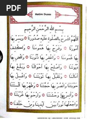 Hatim Duası Pdf : Hatim Belgeleri - Rahmet ve selametlikler, iki cihan güneşi, baslarımızın tacı rahmeten lil'âlemin.